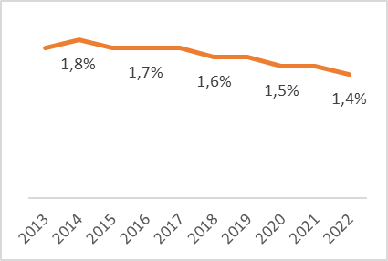 Es un hecho que el crecimiento de la población en el país ha empezado a ralentizarse en razón al menor número de hijos que las familias han decidido tener en los últimos años. En Colombia, la tasa global de fecundidad, definida por el DANE como el número promedio de hijos que una mujer tendría al final de sus años reproductivos (15 a 49 años) si estuviera expuesta a las condiciones de fecundidad en cada una de las edades específicas del momento en que se estima la tasa global y en ausencia de la mortalidad, cae gradualmente desde 2014 (Gráfica 1) con una disminución promedio de -0.4 hijos por mujer.