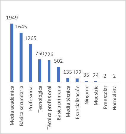 En términos comparativos, Valledupar presenta mejores indicadores que el Total Nacional, pues los nacimientos de madres con escolaridad de bachillerato incompleto es 33 % y los nacimientos de madres con diploma técnico, tecnológico y/o profesional es de 29 %.