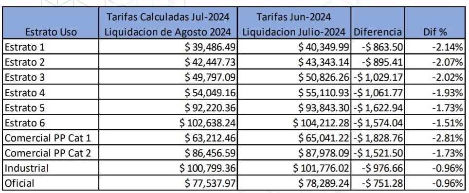 El estrato 2 pagará $42.447 mensuales, que significa una reducción de $895 frente al primer semestre; estrato 3 pagará $49.797, que se traduce en una reducción de $1.029.