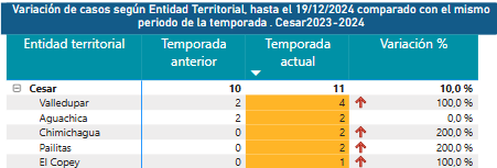 Valledupar es el municipio más afectado, con un total de 4 lesionados por pólvora. Entre los casos registrados en esta ciudad se encuentran un niño de 8 años del barrio 450 Años, una niña de 12 años del barrio Nueva Esperanza, un adulto de 37 años del barrio El Futuro de los Niños y un adulto de 21 años del barrio Don Alberto.