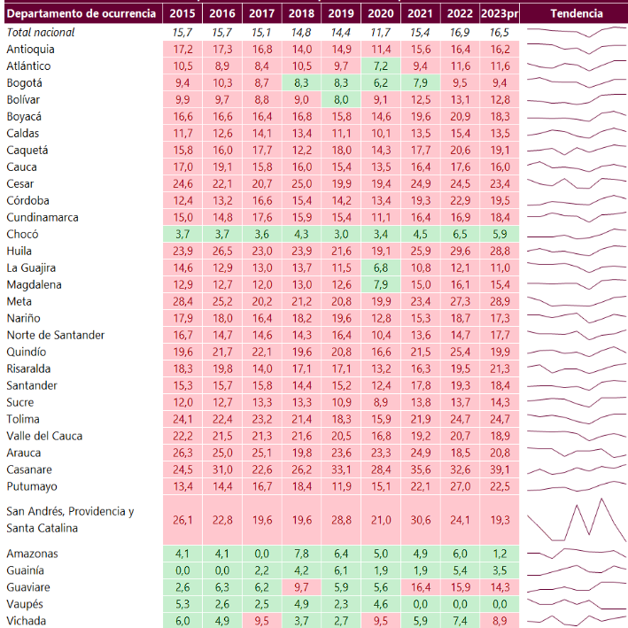 De acuerdo con los archivos de la entidad, la tasa del Cesar fue de 23,4 en el 2023. Aunque esa cifra representó una disminución de un punto frente al 2022, el departamento se ubicó en el quinto lugar a nivel nacional.