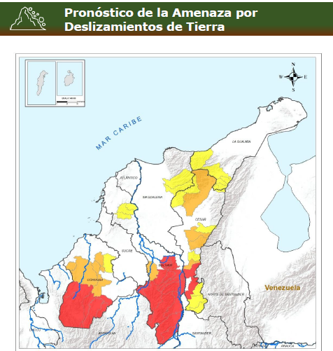 El Instituto de Hidrología, Meteorología y Estudios Ambientales (IDEAM) emitió el boletín 134 alertando sobre niveles elevados del río Magdalena en Gamarra y Tamalameque (Cesar), e hizo un llamado a mantener “especial atención ante posibles afectaciones por desbordamientos e inundaciones en estos municipios”. Además, declaró alerta roja por riesgo de deslizamientos en Aguachica y La Gloria, y alerta naranja para Chiriguaná, Curumaní, Pelaya y Valledupar, en un contexto donde el 40 % del país se encuentra en alerta por deslizamientos.