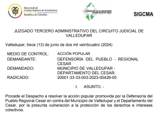 La acción popular tuvo dos sentencias, una el 13 de junio del 2024 y una apelación con fecha el 29 de agosto del 2024. El fallo ordenó al Departamento del Cesar y al Municipio de Valledupar a que, de manera conjunta, realicen gestiones administrativas y presupuestales para garantizar el acceso efectivo de los habitantes de calle a estos derechos. El mismo exige la creación o habilitación de hogares de paso dignos y adecuados, con elementos esenciales para satisfacer las necesidades básicas, y se ordena ampliar progresivamente la cobertura y capacidad de estos servicios, garantizando su permanencia y continuidad.