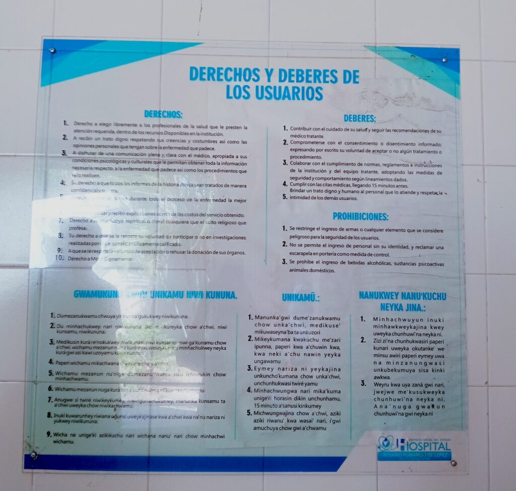 El hospital es enfático en ser pioneros con el programa de “Parto etnocultural” o parto vertical: “Ofreciendo atención con parteras tradicionales debidamente certificadas, permitiendo la entrada del padre o familiar de la gestante, poniendo a disposición un herbario con plantas medicinales que son preparadas en ese mismo lugar por mujeres indígenas que hacen parte del personal del hospital”.