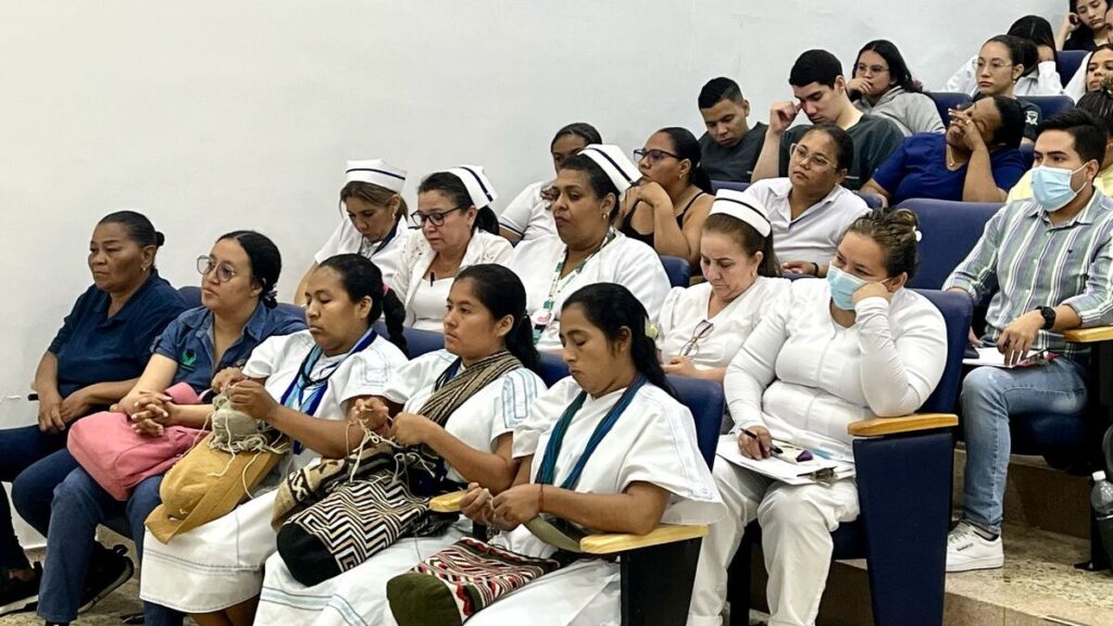 Por esa razón, el conversatorio “Nacimiento con dignidad, hacia una atención sin violencia obstétrica” en el Hospital Rosario Pumarejo de López el 28 de febrero, abordó el tema ‘Parto Etnocultural’ con representantes de la EPSI Dusakawi, parteras e intérpretes de la etnia arhuaca y kankuama, médicos del hospital.