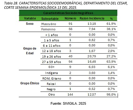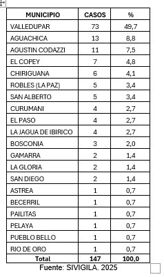Según el último período epidemiológico del Instituto Nacional de Salud, con fecha hasta marzo de 2025, el departamento del Cesar se mantuvo estable en cuanto al comportamiento de infecciones.