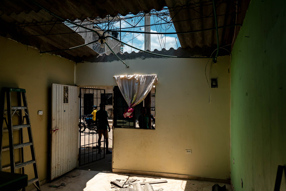 Carolina Daza es una madre cabeza de hogar que habita en una humilde vivienda en la calle 8A con carrera 39 con sus tres hijos, un niño y dos adolescentes. En medio del aguacero sintió un fuerte ruido, el techo de la sala se había levantado por completo, dejando sin protección esa zona de la vivienda.