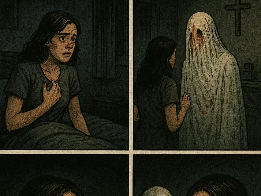 El eco se fue acercando poco a poco, hasta sentirse justo en su habitación. Maribel temblaba. Aquella voz no era desconocida. Corrió a la cocina, donde su madre había dejado una cruz de madera. Pero al llegar, se paralizó: frente a la cruz, una figura blanca la observaba.
