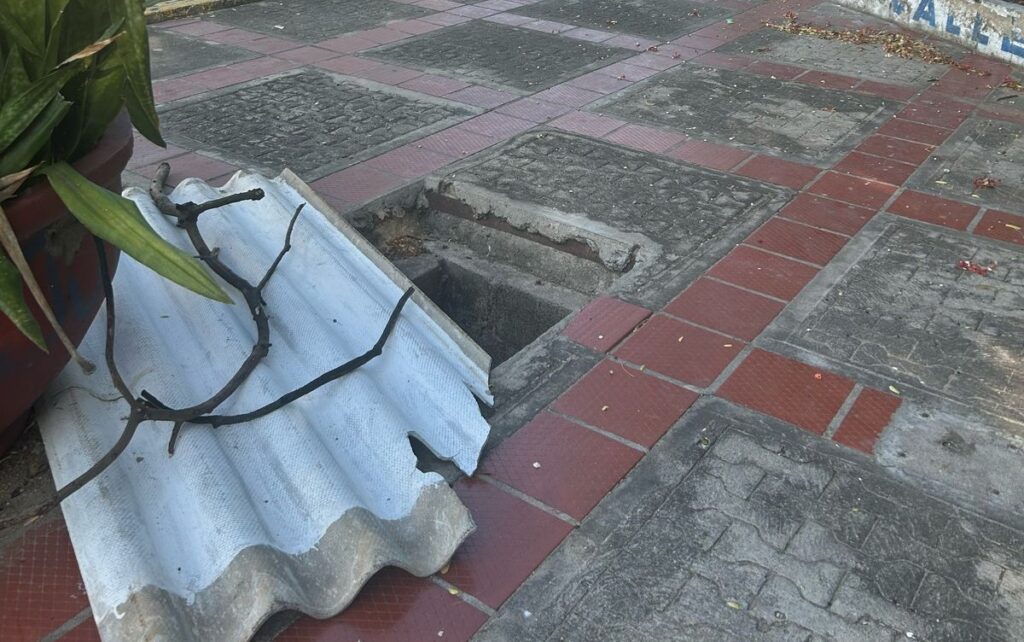 Además, la acumulación de residuos alrededor del mismo ha generado focos de contaminación y malos olores, mientras que el hueco expone a peatones y vehículos a un posible accidente.