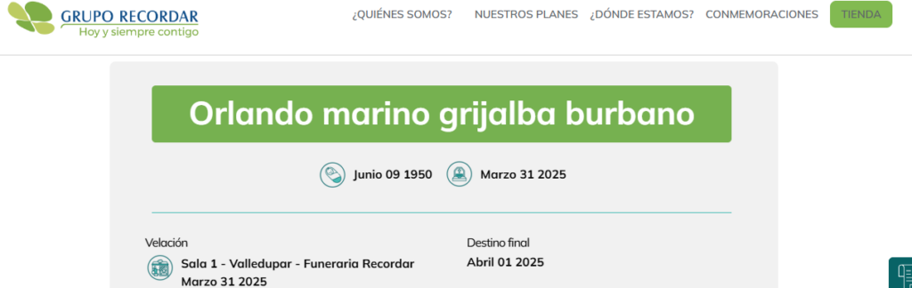 El 1.º de abril, la familia Grijalba vivió un momento de profunda indignación y dolor en el Parque Cementerio Jardines de Valledupar, administrado por el Grupo Recordar. Orlando Grijalba, quien había adquirido un lote en el cementerio hace entre 12-14 años, enfrentó un retraso inexplicable en su sepultura, pese a tener todos los trámites en regla.