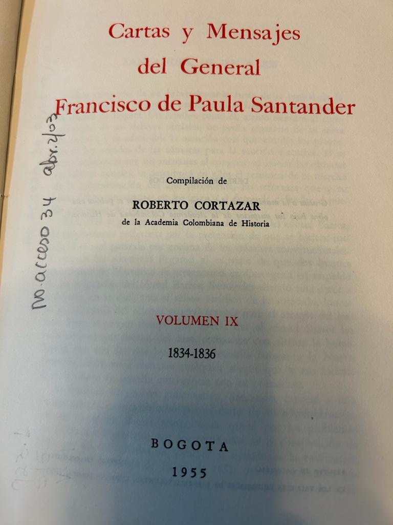 Según información de Mauricio Tovar, director de archivo, para la época de la publicación del libro (1955), el archivo de la Academia de Historia no había llegado al AGN (llegó aproximadamente en 1998).