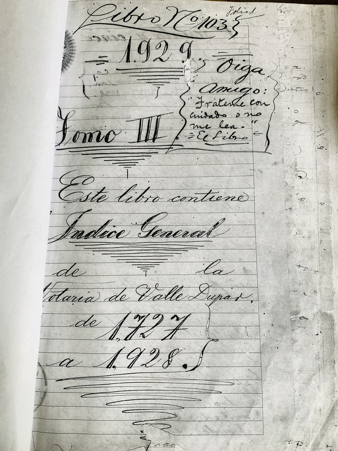 Este texto es también un llamado. La sala de consulta debería contar con un libro accesible que reúna el índice de 1929 y el de 1941. Un solo volumen legible. Con referencias cruzadas. Con una guía rápida que explique Valencia, el salto a Valledupar y el corte entre 1903 y 1904. Con reglas claras de acceso y horarios visibles. Un índice no es un lujo. Es infraestructura cultural. Esto lo debería financiar la Alcaldía de Valledupar, la creación de un libro que formalice nuestra historia, el índice de Misael no debería continuar siendo un grupo de fotocopias.