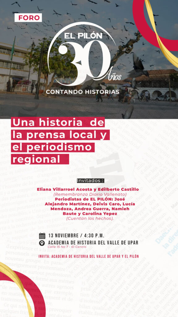Valledupar y el departamento del Cesar durante los últimos 30 años fueron protagonistas de hechos trascendentales que marcaron la historia de la región Caribe. Para conocer detalles y recordar la manera en la que los medios de comunicación fueron testigos de estos acontecimientos, EL PILÓN realizará el foro ‘Una historia de la prensa local y el periodismo regional’ en el marco de la celebración de sus 30 años de fundación.