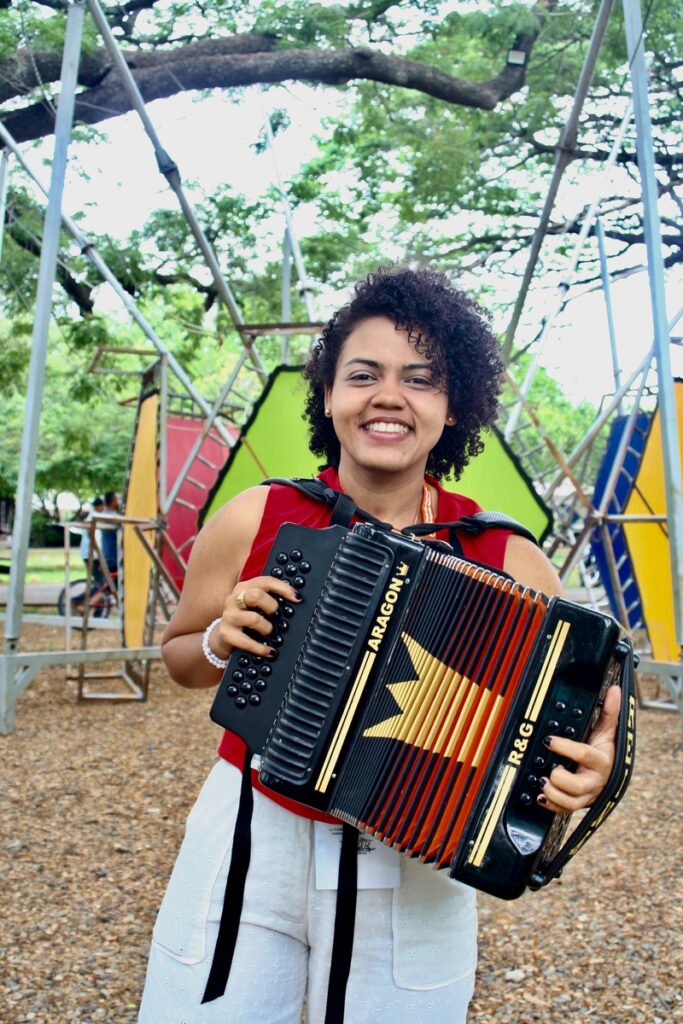 Jenifer Aragón es oriunda de Albania, La Guajira. Es una acordeonera que destaca por su disciplina, sacrificio y resiliencia en la música vallenata. Ella misma expresó a EL PILÓN: “Me siento muy contenta porque creo que esto es un proceso amplio de sacrificio, de disciplina y de resiliencia también”. Desde muy pequeña tuvo un vínculo especial con el acordeón: “Ese primer encuentro fue a los 3 años con un detalle que me regaló mi madrina, tía madrina, que fue un acordeón de juguete”.