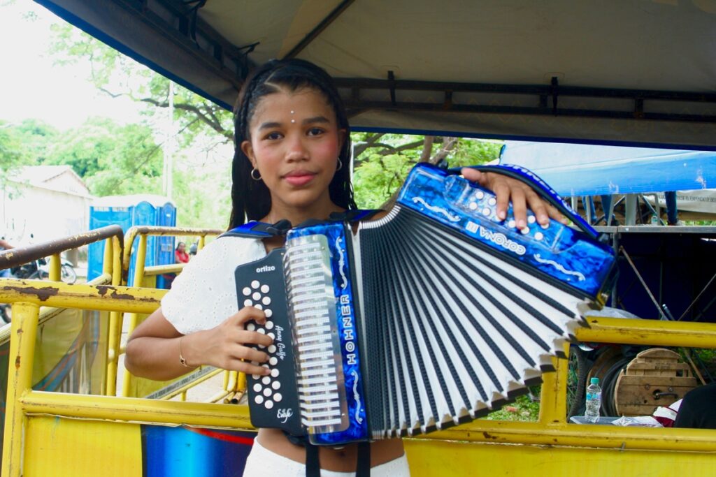 Heinis Gulfo Palma, una joven acordeonera radicada en Santa Marta y estudiante de primer semestre de Psicología en la Universidad del Magdalena, se ha destacado por su dedicación y preparación para los festivales vallenatos. Según sus propias palabras, “como el año pasado ensayando fuerte, fuerte, durísimo”. Este año, aunque no contó con el mismo profesor, recibió apoyo a través de “videollamadas” del maestro Jaime Arrieta y “el profesor de la universidad, Carmelo Hernández me daba otras rutinas y para que los arreglos me ayudaran este año”. Además de sus estudios, Heinis comparte su conocimiento dictando clases de acordeón en la misma universidad.