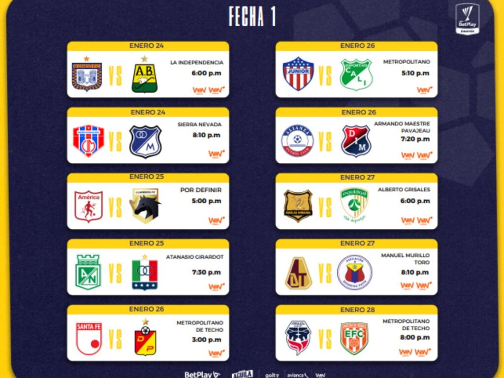 La Dimayor se pronunció el día 14 de enero a través de un comunicado en el que hizo oficial la programación de la primera jornada de la Liga, Torneo y los partidos de la serie de Superliga. Se confirmó que quienes abrirán el semestre serán Boyacá Chicó y Atlético Bucaramanga, que a las seis de la tarde del 24 de enero medirán fuerzas en el estadio La Independencia de Tunja en búsqueda de cosechar sus primeros tres puntos.