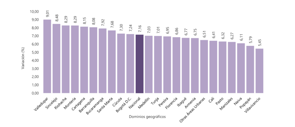 La ciudad de Valledupar se mantiene en el primer lugar a nivel nacional por su índice de inflación anual que alcanzó un 9,1 % entre mayo de 2023 y 2024, superando a todas las ciudades del Caribe y el promedio nacional que fue de 7,16 %.