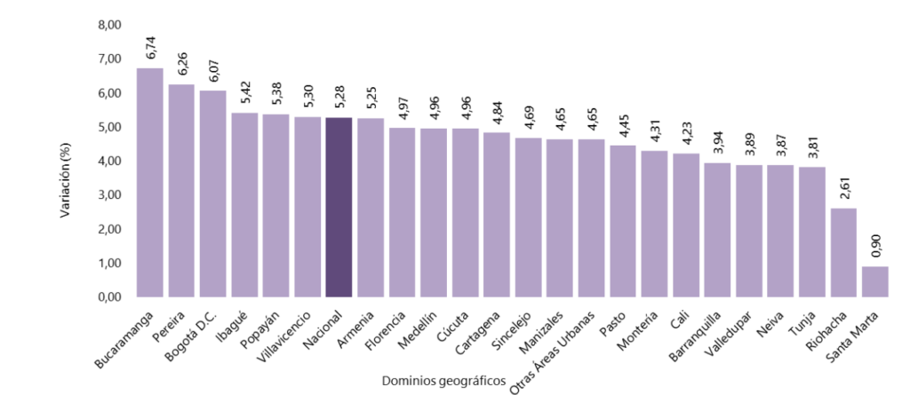 No obstante, a nivel de la región Caribe, Santa Marta (0,9 %) y Riohacha (2,6 %) fueron las ciudades que más lograron reducir el costo de los productos y servicios en el citado período, mientras que Bucaramanga (6,7 %), Pereira (6,2 %) y Bogotá (6 %), tuvieron mayores alzas en el costo de vida.