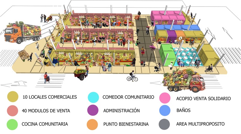 Jeraldín Vera, jefe de la Oficina de Gestión Regional de la entidad, afirmó que los Puntos de Abastecimiento Solidario son “más que plazas de mercado” y que la infraestructura contará con 40 puntos de venta, 10 locales comerciales, 1 centro de acopio, cocina y comedor comunitario que será administrado por el Ministerio de la Igualdad y Equidad.