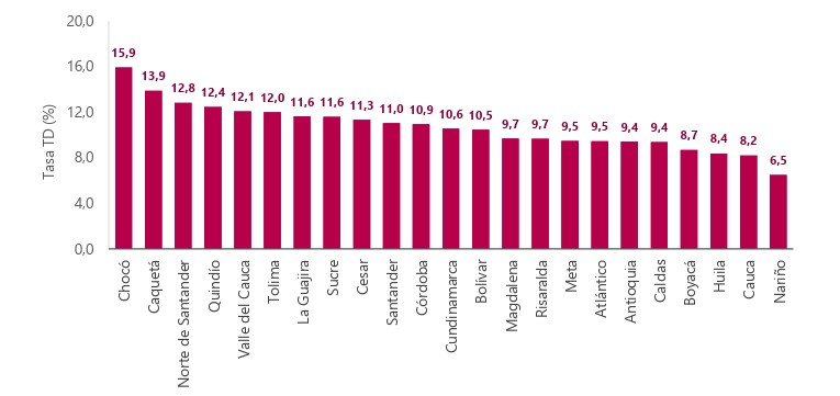 A nivel Caribe, el departamento se ubicó tercero, superado por La Guajira y Sucre, ambos con el mismo 11,6 %. En la última década en el Cesar se han registrado pocos avances en la lucha contra el desempleo y cerrar la brecha de género. Por eso, el territorio ocupó el tercer lugar entre los departamentos con más brechas laborales entre mujeres y hombres, solo superado por Magdalena y Bolívar, ambos departamentos de la región Caribe.