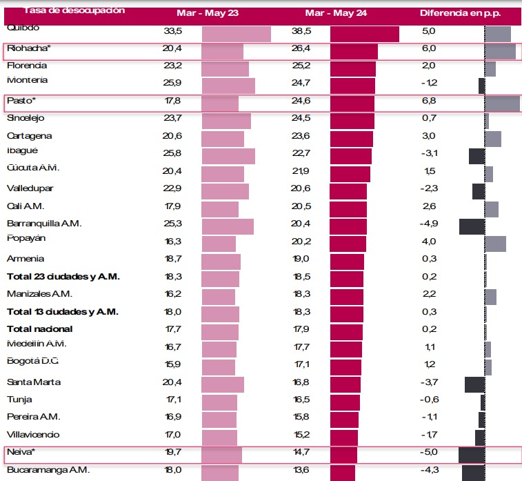 El primer territorio con más personas entre los 15 y los 28 años sin un puesto de trabajo es Quibdó, Chocó, con un 38,5 %. En segundo lugar está Riohacha, capital de La Guajira, con 26,4 %. Otras ciudades del Caribe que lideran el ranking son Montería (24,7 %), Sincelejo (24,5 %) y Cartagena, con 23,6 por ciento.