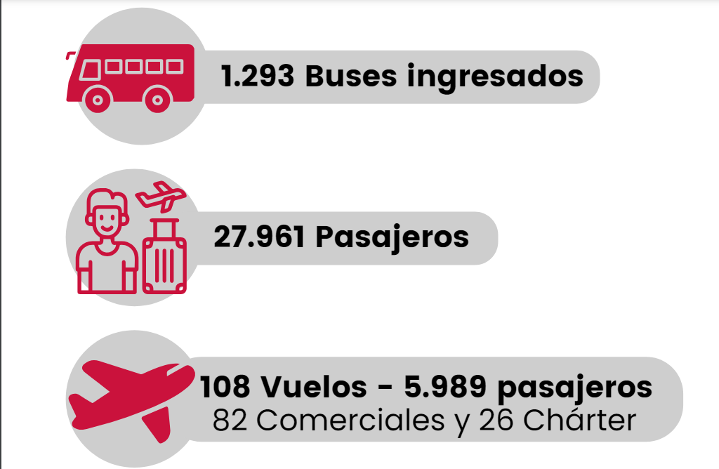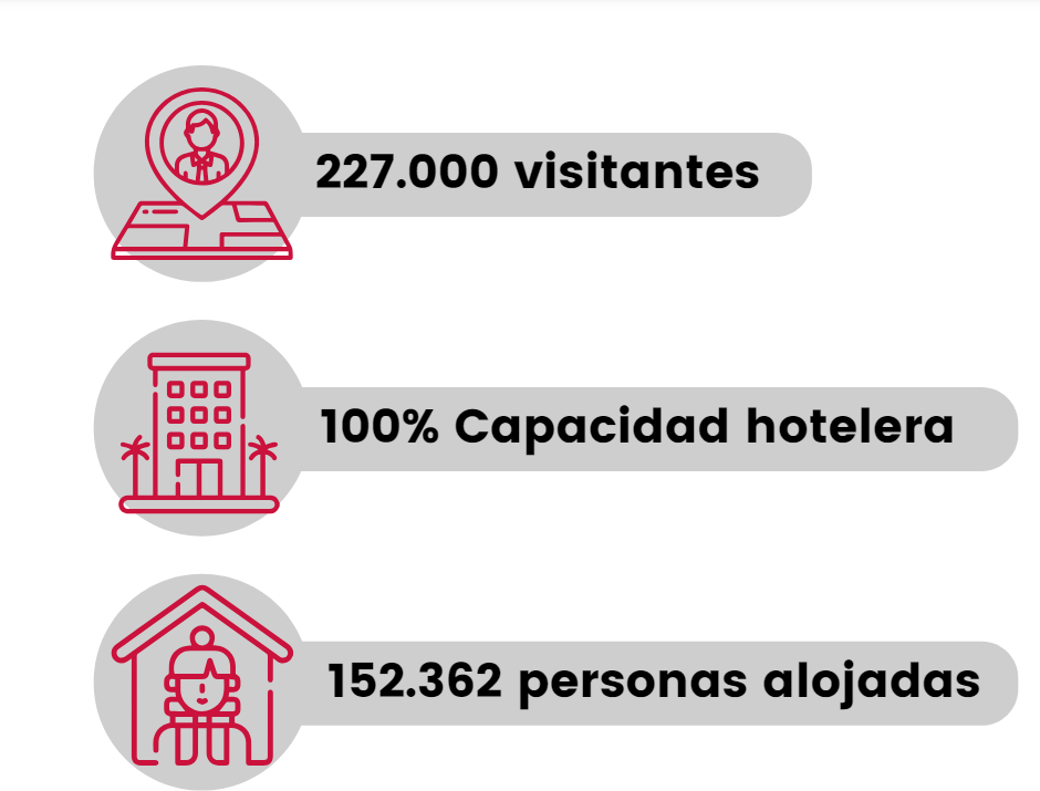 Este flujo de personas se vio reflejado en que la capacidad hotelera estuvo al 100 %, hospedando a 152.362 personas, incluidos 201 extranjeros y varias personalidades.