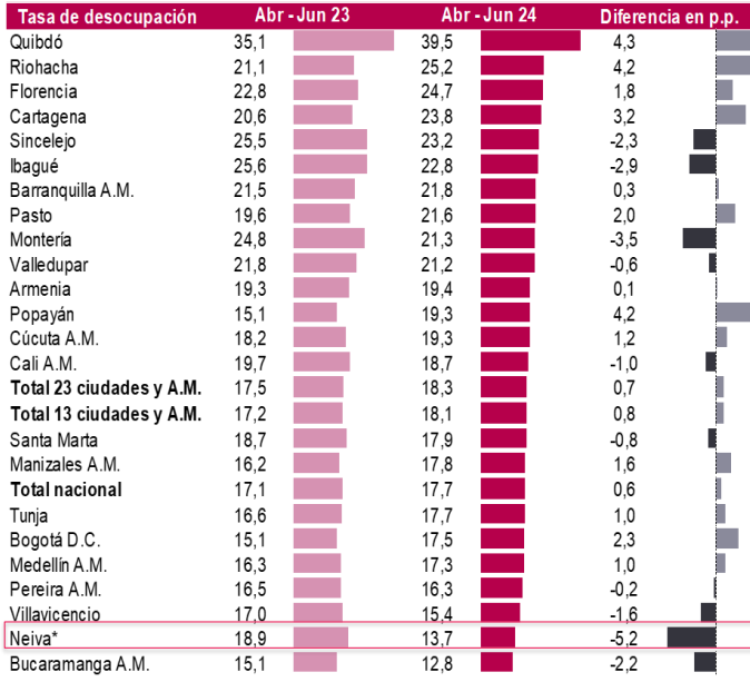 Con un 21,2 % para el mes de junio, Valledupar ocupó el décimo lugar entre 23 ciudades colombianas por su tasa de desocupación juvenil, es decir, desempleados con edades entre los 15 y los 28 años.