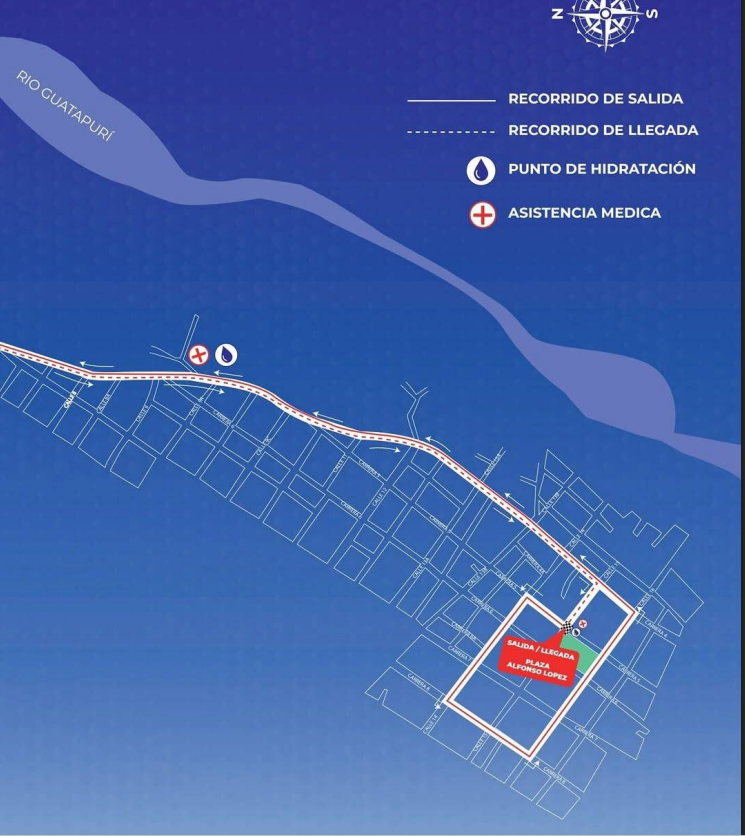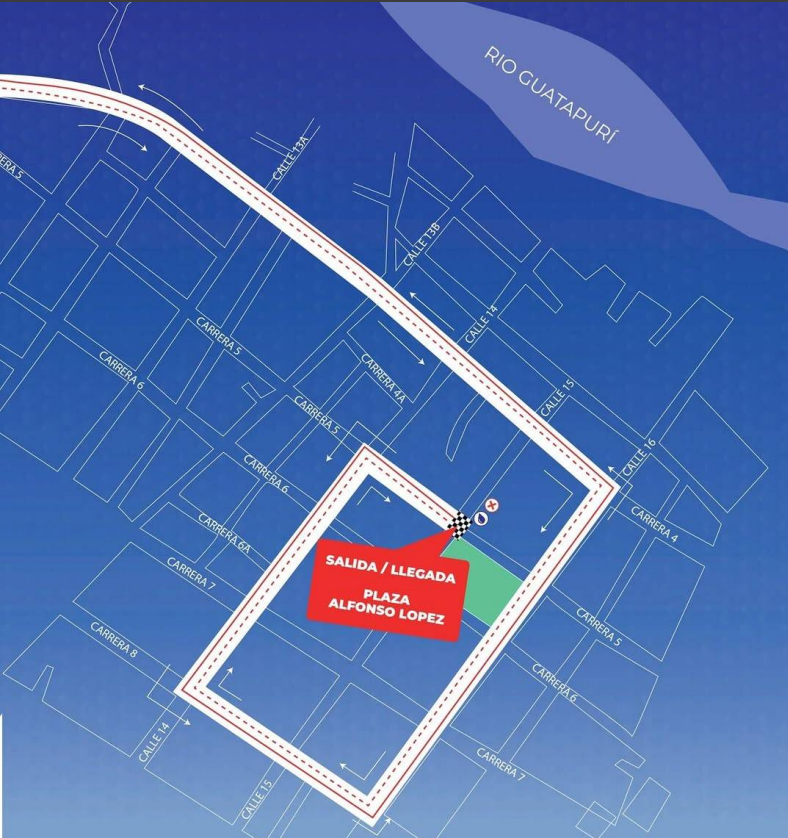 La jornada se desarrollará desde las 5:00 a.m. hasta las 10:00 a.m. El recorrido parte desde la plaza Alfonso López, bordeando todo el centro histórico de la ciudad y tomando la carrera 4ta hasta llegar a la casa de Poncho Zuleta; ahí se harían los primeros cinco (5) kilómetros de la carrera. Y siguiendo en esa misma vía, sobre la 4ta hasta la Pilonera Mayor, se completaría la ruta de los 10 kilómetros, al retornar a la plaza Alfonso López. Contará con tres modalidades: 10K, 5K y una categoría especial de 3K destinada a los pacientes que han sido intervenidos en la institución y que hacen parte del Programa de Rehabilitación Cardíaca.