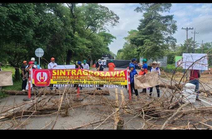 Más de 80 trabajadores de la Corporación Colombiana de Investigación Agropecuaria, Agrosavia, protagonizaron una jornada de protesta en el Centro de Investigación Motilonia, ubicado en jurisdicción de Agustín Codazzi (Cesar), donde implementaron bloqueos intermitentes sobre la vía que comunica a este municipio con Becerril.