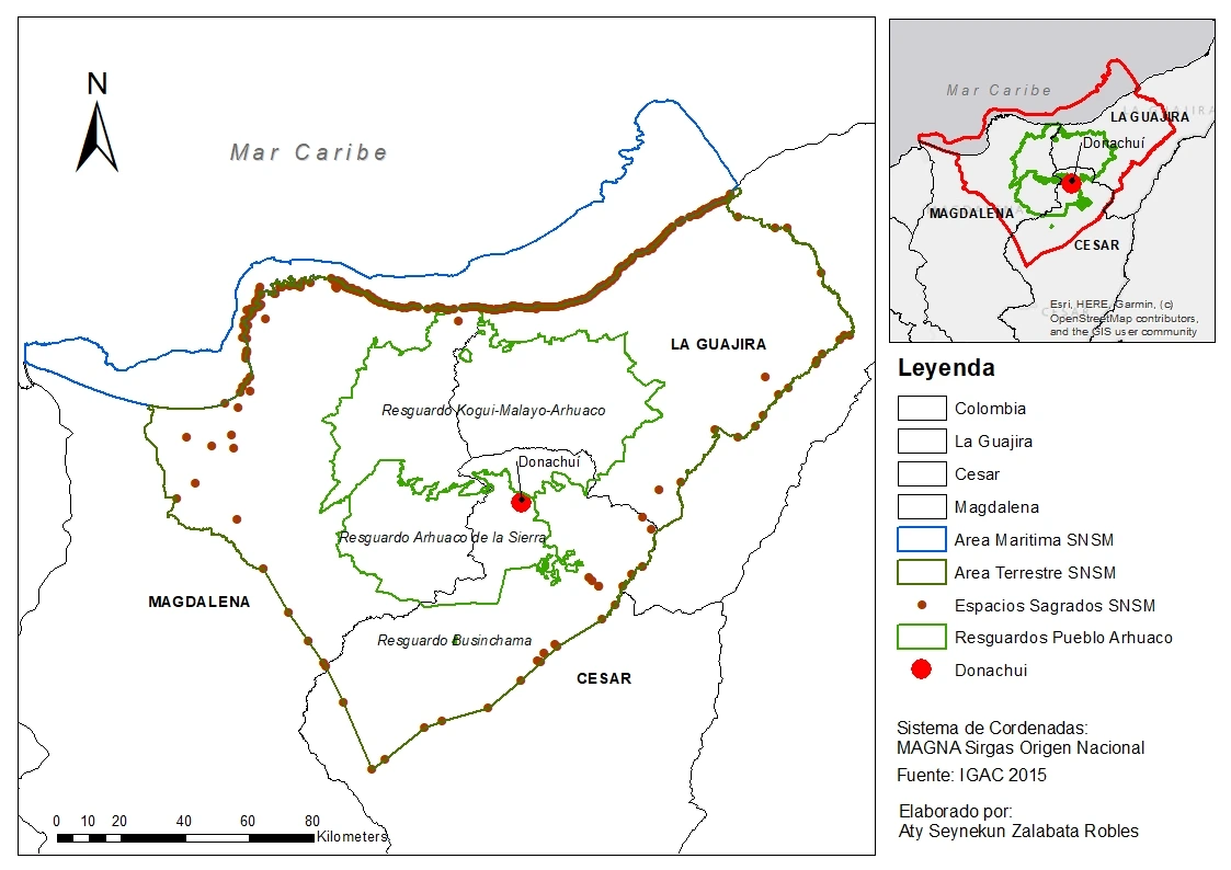 Elas Helo Molina (ecólogo, especialista en Sistemas de Información Geográfica e investigador del Observatorio de Territorios Étnicos y Campesinos de la Facultad de Estudios Ambientales y Rurales en la Pontificia Universidad Javeriana) y Cristiam Guerrero Lovera (politólogo, también investigador del mismo observatorio), argumentan en el texto ‘Los daños ambientales y socioculturales en la Sierra Nevada de Santa Marta y falta de protección efectiva’, publicado en 2019, lo siguiente: “La ley de origen y la Línea Negra son mecanismos que garantizan las formas de vida de las comunidades indígenas de la SNSM, dado que suponen un vínculo entre la concepción espiritual y el quehacer cotidiano de los pueblos en sus territorios”. Sin embargo, el pluralismo jurídico y los múltiples escenarios de protección aún no logran una conservación ecológica propia ante los intereses económicos extractivos que convergen sobre la Sierra.