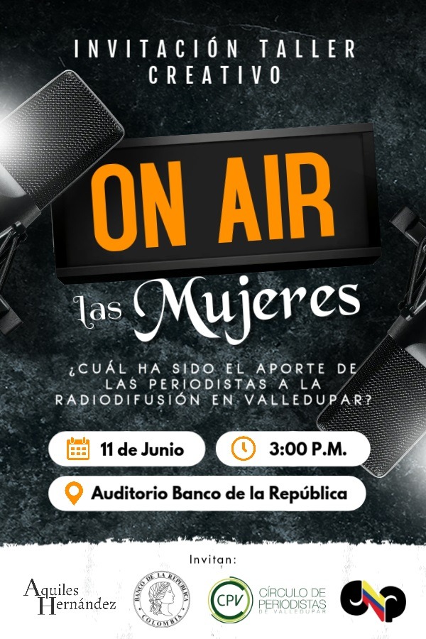 El aporte de las mujeres periodistas a la radiodifusión en el departamento del Cesar comienza a tomar un lugar más visible gracias a iniciativas que buscan rescatar y visibilizar sus historias y contribuciones, entre ellas, el taller creativo ‘On air las mujeres’, que será realizado este miércoles 11 de junio, a las 3 p. m., en el auditorio del Banco de la República.