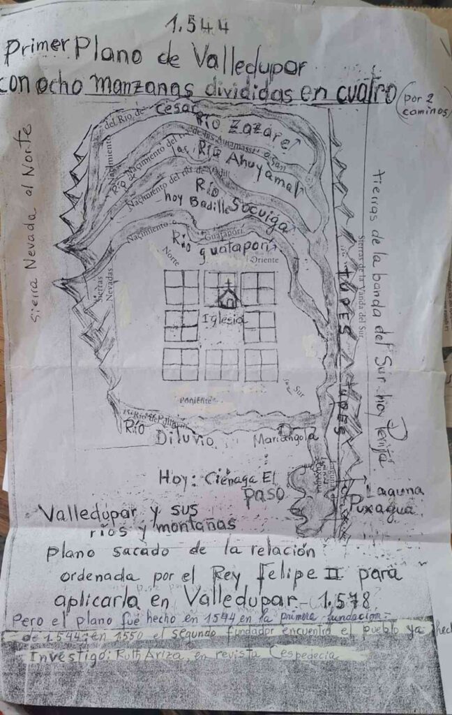 Durante la fundación señala el solar donde ubicaría la primera iglesia católica, al oriente, en la esquina de la plaza donde está hoy el Concejo municipal, y donde estuvo el colegio de la Sagrada Familia, y donde allí estuvo ubicado el templo o centro ceremonial del cacique Upar, sobre cuyas ruinas se edifica el templo católico.