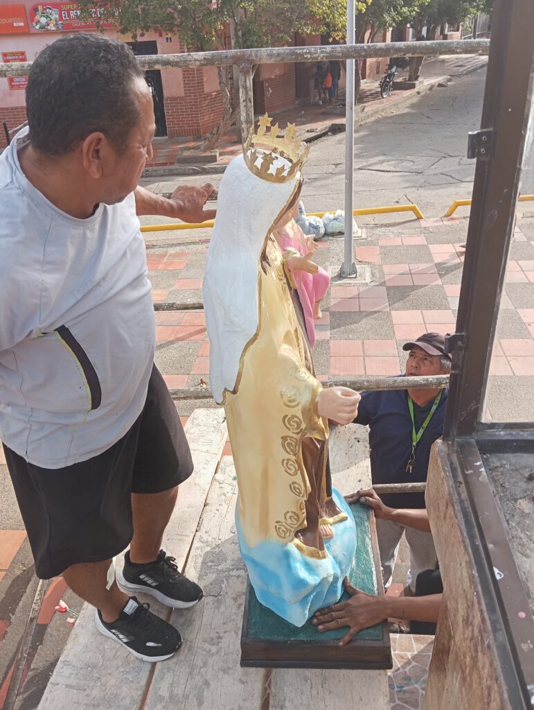 La virgen del barrio El Carmen de Valledupar, que había sido vandalizada en días anteriores por sujetos desconocidos que la atacaron a piedra, fue restaurada gracias al apoyo de tres hombres devotos de la virgen, que no pertenecen al barrio, quienes aportaron el capital necesario para reparar el protector, la mano, el manto y el Niño Dios del monumento, dejándolo en óptimas condiciones para su festividad. La restauración y decoración total del monumento tuvo un costo de 900.000 pesos.
