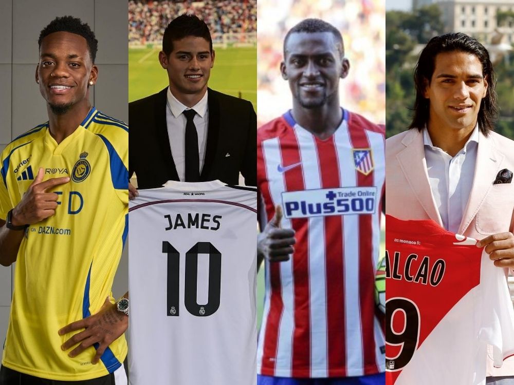 Le siguen James Rodríguez, quien llegó al Real Madrid en 2014 por 75 millones de euros, y el propio Luis Díaz, cuyo traspaso desde el Porto al Liverpool costó 53 millones. También figuran Radamel Falcao (43 millones al Mónaco), Jackson Martínez (más de 70 millones sumando sus pasos por el Atlético y el fútbol chino) y Carlos Bacca (33 millones al Milan).