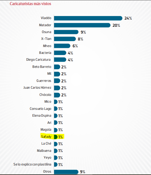 La categoría de caricaturistas más vistos, también incluye a Safady, artista gráfico vinculado a EL PILÓN, con un 1 % de los líderes que más ven sus trabajos. Esta cifra refleja el impacto del medio no solo en la información escrita tradicional, sino en la expresión artística y crítica que enriquece el debate público en Colombia.