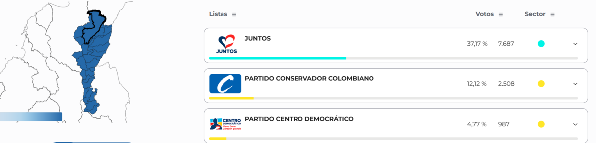 La elección del Consejo Municipal de Juventud en Valledupar, realizada este domingo 19 de octubre, dejó como ganador al establecimiento. La lista con más votos fue la de ‘Juntos’, con 7.687 apoyos, representando el 37 % de todos los sufragios hasta 100 % del preconteo reportado por la Registraduría. Aunque la lista de 10 candidatos se registró como independientes, diversos sectores políticos afirman que contó con el apoyo de contratistas y funcionarios de la Alcaldía de Valledupar.