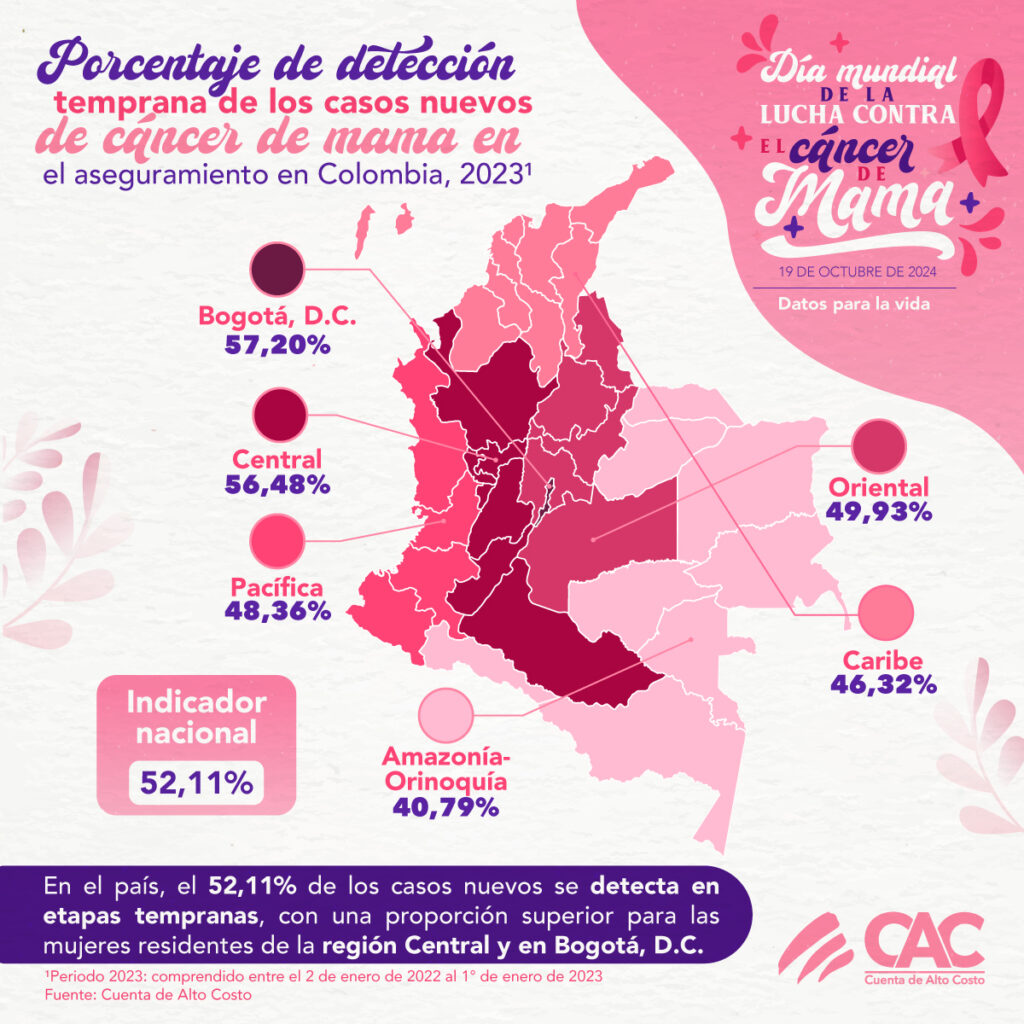 En Colombia “solo la mitad de los casos se diagnostican de forma temprana, en el 2023 para la región Caribe fue del 46,32%”, según Cuenta de Alto Costo, una entidad del sistema de salud que gestiona y proporciona datos e información comparable para acelerar las mejoras en la atención de las personas con enfermedades de alto costo.