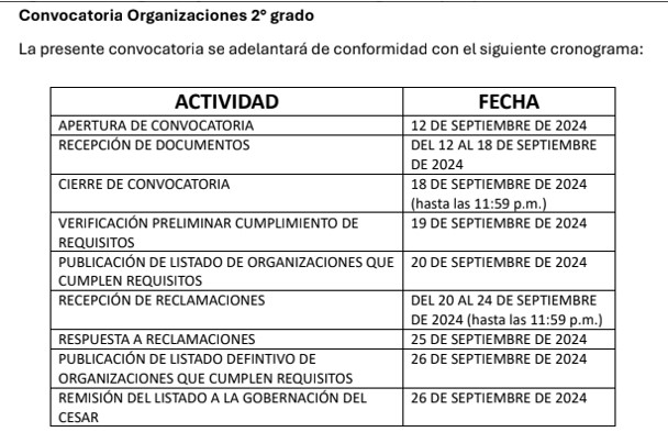 Para participar, las organizaciones deben presentar el acta de constitución y un certificado de existencia y representación legal, emitido por la Cámara de Comercio. Y enviar la documentación a ugt.cesar@ant.gov.co con asunto Convocatoria Organizaciones 2do grado.