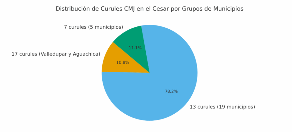 En el Cesar, solo dos municipios tienen 17 curules: Valledupar y Aguachica, mientras que hay 13 cupos en Agustín Codazzi, Astrea, Becerril, Bosconia, Chimichagua, Chiriguaná, Curumaní, El Copey, El Paso, La Gloria, La Jagua de Ibirico, Pailitas, Pelaya, Pueblo Bello, La Paz, San Alberto, San Diego y San Martín. Los municipios más pequeños en población, como Gamarra, González, Manaure Balcón del Cesar, Río de Oro y  Tamalameque, solo tendrán 7 consejeros cada uno.