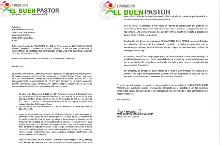 “La ausencia injustificada de pago por parte de la entidad contratante pone en riesgo la estabilidad económica de la fundación, que ha cumplido con los compromisos asumidos, pero enfrenta el acoso de sus acreedores”, se lee en el documento.