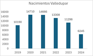 Si pasamos a Valledupar encontramos una situación que merece toda nuestra atención, dado que se ha presentado una disminución notable en los nacimientos de la ciudad.