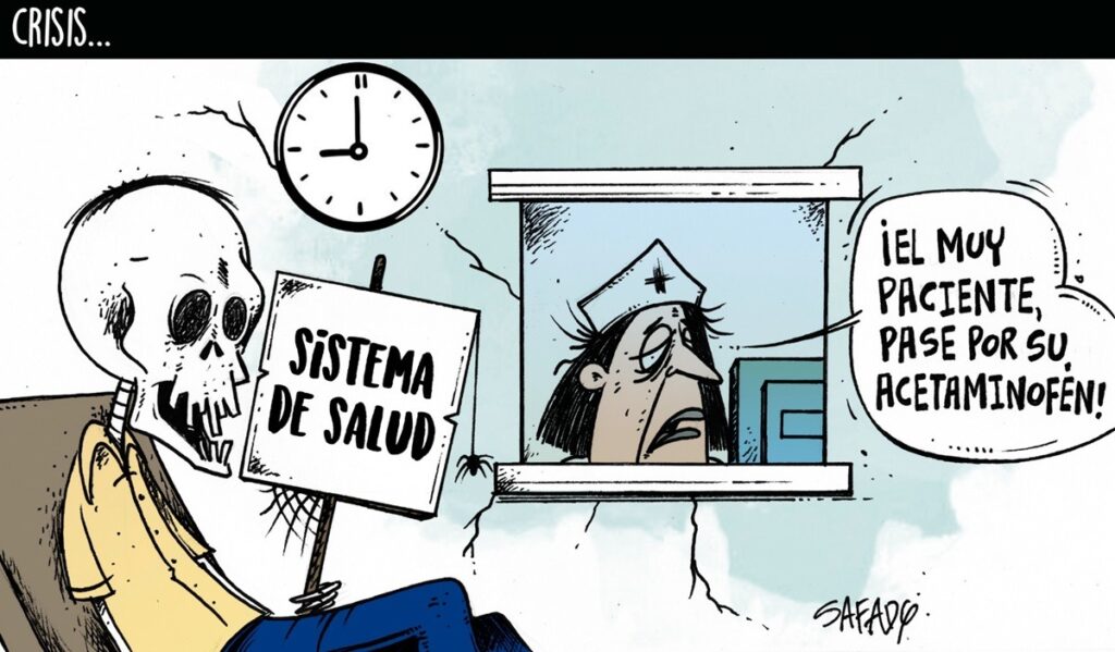 El trabajo ganador, titulado “Crisis”, es una sátira poderosa que refleja la situación del sistema de salud en Colombia. Con humor negro, denuncia cómo la ineficiencia, la burocracia y la falta de recursos pueden tener consecuencias fatales para los pacientes. El esqueleto simboliza a quienes esperan tanto tiempo por atención que terminan muriendo sin recibirla, mientras que la enfermera indiferente y el ofrecimiento de un simple acetaminofén resaltan la banalidad de las soluciones frente a problemas graves. Una caricatura de gran síntesis, trazo y genialidad.