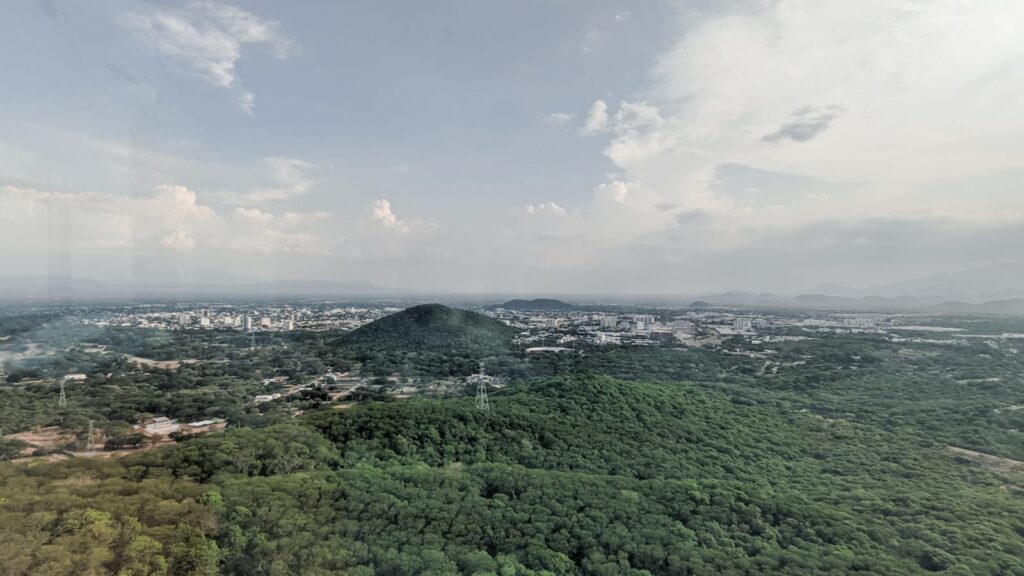 La fachada presenta una estructura verde, de unos 30 metros, con flores. El tercer piso es más pequeño, pero ofrece un mirador de 360 grados del valle y está rodeado de vidrio templado con cercas metálicas en la parte superior para evitar daños. Además de las escaleras, a este punto se puede llegar en ascensor.