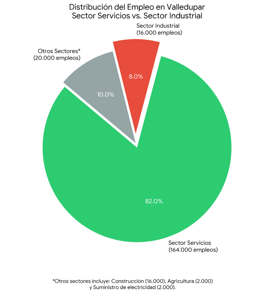 Al analizar la distribución de la fuerza laboral, se evidencia una alta concentración en el sector de servicios. En contravía, la industria y el turismo tienen poco protagonismo en la economía local.
