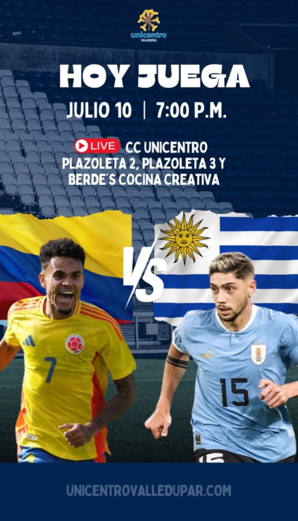 De igual forma, los hinchas se pueden acercar también a los centros Comerciales Mayales Plaza, Guatapurí Plaza y Unicentro para apoyar a la selección Colombia.