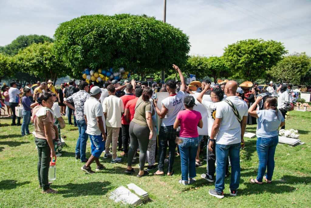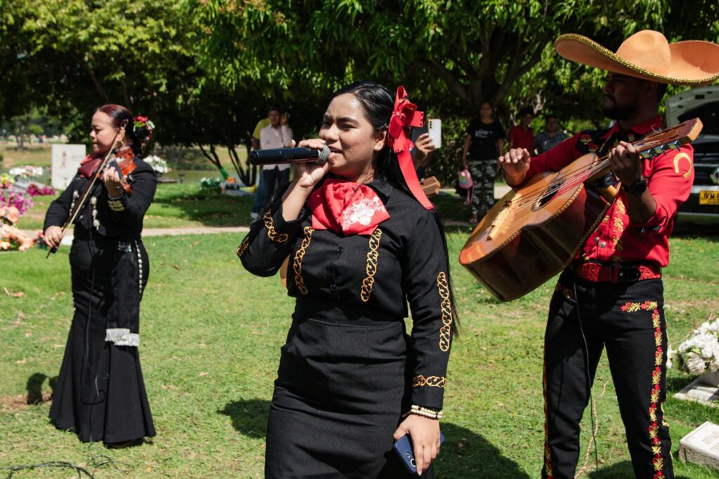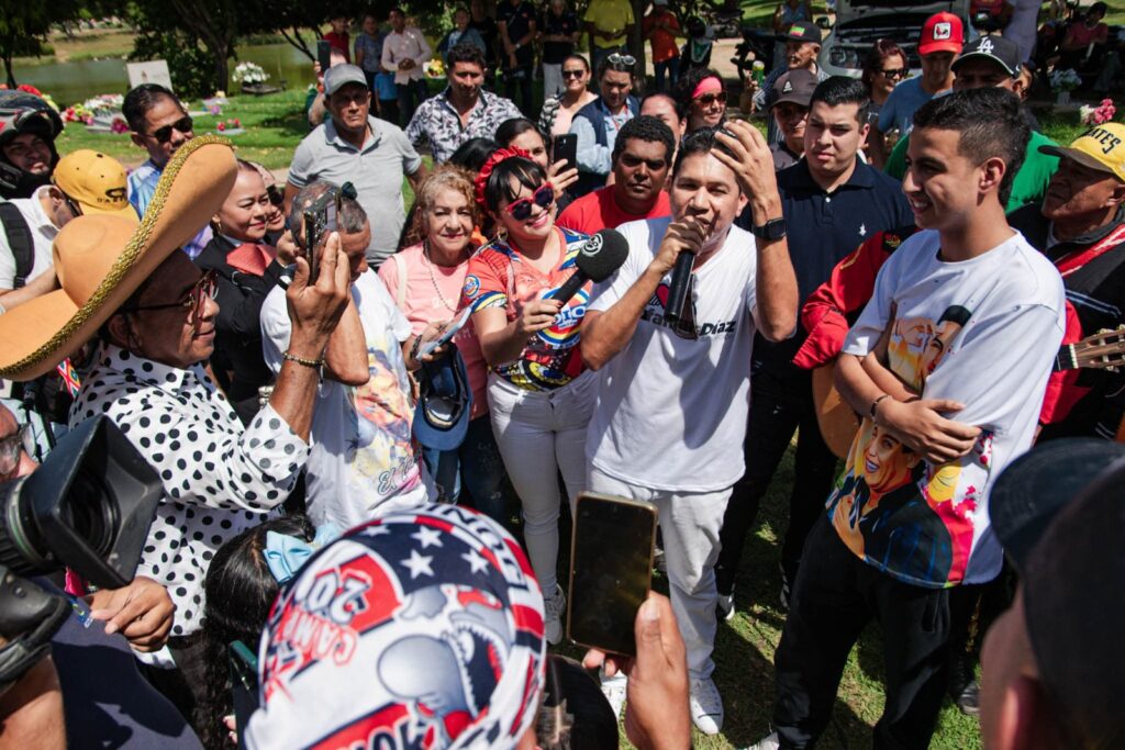 Así lo evidencia el caso de Adela Rodríguez Barrios, comerciante y ferviente admiradora de Diomedes. Llegó desde Galapa, Atlántico, acompañada de un grupo numeroso de seguidores que ella misma organizó para rendir homenaje al ‘Cacique de La Junta’, cuya canción ‘El cóndor herido’ la ha cautivado durante años. “Yo soy fanática de Diomedes desde joven, y desde el año en que murió, no he dejado de venir. Traigo un bus, dos, hasta tres buses llenos de familias y amigos que también lo admiran”, explicó con orgullo, señalando hacia el exterior del cementerio donde estaba parqueado un bus con capacidad de aproximadamente 40 personas, entre ellos acordeoneros, cantantes y percusionistas que fusionan el vallenato con otros géneros del Caribe.