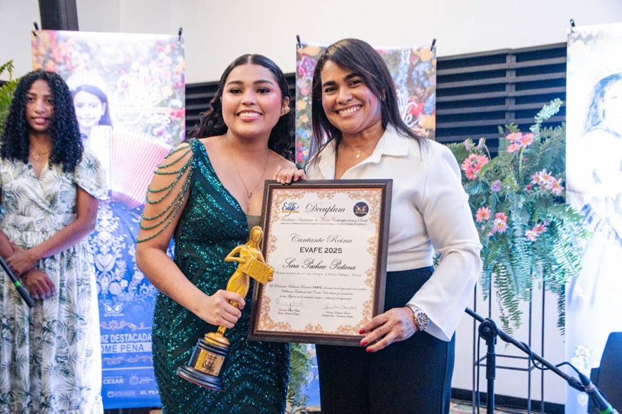 Durante la ceremonia también fue exaltada Sara Pacheco, Reina Cantante de EVAFE 2025. La joven emocionó al público al interpretar una canción de Los Hermanos Zuleta, logrando el triunfo que buscaba desde hace tres años.