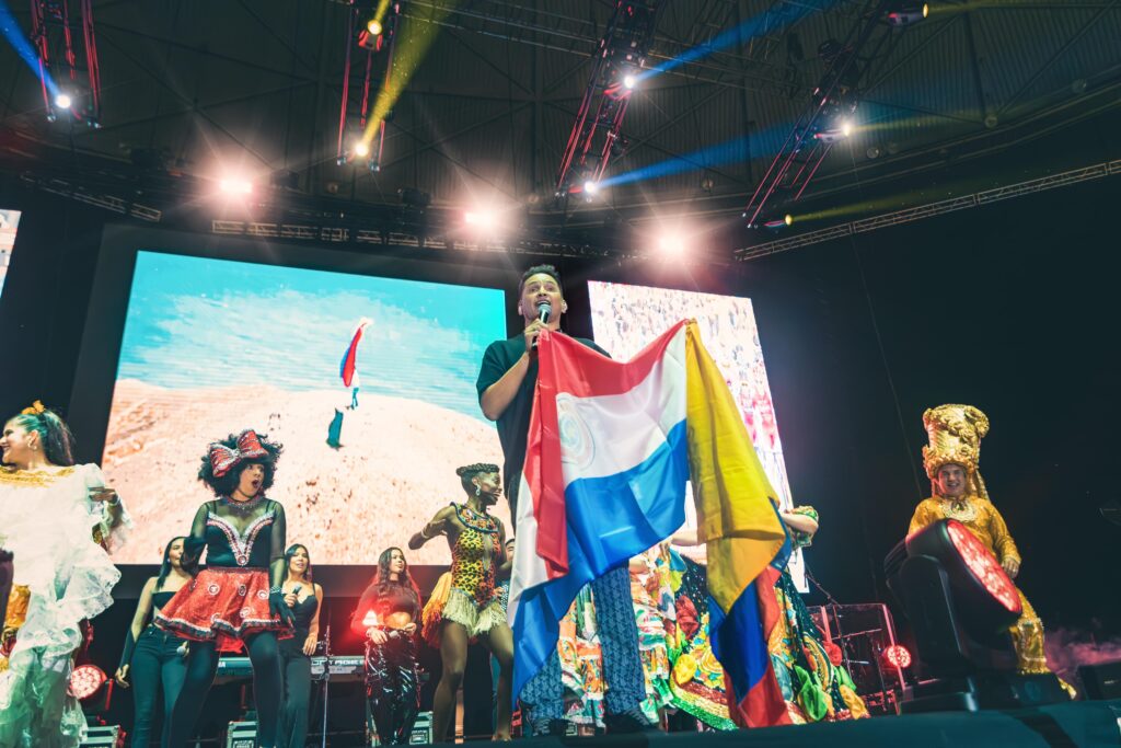 Celedón le imprimió un colorido patriótico a su presentación con unas danzarinas que bailaron al ritmo de sus éxitos: ‘La invitación’, ‘Parranda en El Cafetal’, ‘Esta vida’, ‘Cuatro rosas’, ‘Mi locura’, y otras canciones que emocionaron a los asistentes.