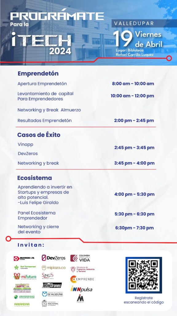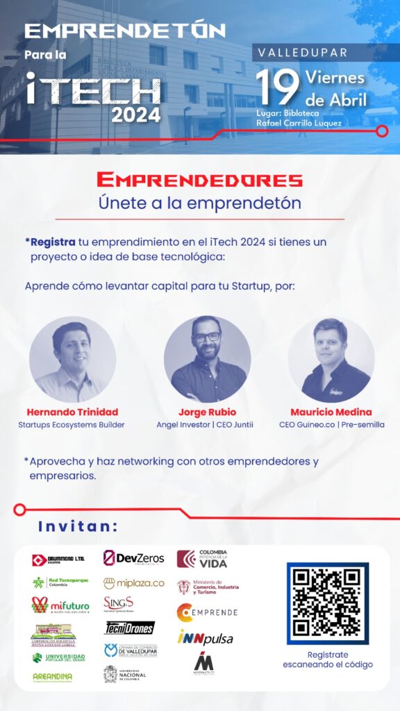 El próximo 19 de abril se realizará en la Biblioteca Departamental Rafael Carrillo Lúquez, de Valledupar, la segunda edición de iTech 2024, evento gratuito que reunirá a los mejores exponentes del país para discutir las últimas tendencias en tecnologías disruptivas y producto digital.
