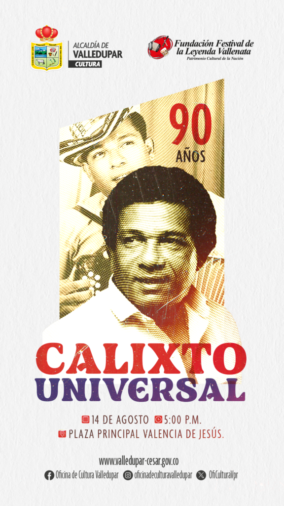El miércoles 14 de agosto de 2024, en el corregimiento de Valencia de Jesús, la Alcaldía de Valledupar a través de la Oficina de Cultura, unida a la Fundación Festival de la Leyenda Vallenata, conmemoran el natalicio número 90 del Rey Vallenato Calixto Antonio Ochoa Campo.